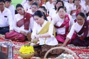 ប៉ៃលិន៖ ថ្ងៃទី១៣ ខែកញ្ញា ឆ្នាំ២០២៥ លោកជំទាវបណ្ឌិត បាន ស្រីមុំ អភិបាលនៃគណៈអភិបាលខេត្តប៉ៃលិន រួមជាមួយថ្នាក់ដឹកនាំ មន្ទីរ អង្គភាព ស្ថាប័នជុំវិញខេត្ត និងក្រុមការងារ បានអញ្ជើញនាំយកទេយ្យទាន ចង្ហាន់បិណ្ឌ បាត្រ និងបច្ច័យវេរប្រគេនដល់ព្រះសង្ឃ ក្នុងឱកាសបិណ្ឌវេនទី៦ នៃពិធីបុណ្យភ្ជុំបិណ្ឌ ចំនួន ២វត្ត ក្នុងក្រុងប៉ៃលិន ទី១-វត្តរតនសោភ័ណ «ហៅវត្តកោងកាង» និងទី២-វត្តពោធិមារាម«ហៅវត្តប៉ាហ៊ី» ដើម្បីឧទ្ទិសមគ្គផល និងគុណូប្បការៈគុណ ទៅដល់បុព្វការីជន និងវិរៈកងទ័ពដែលបានពលីក្នុងបុព្វហេតុការពារជាតិ និងប្រជាជន។